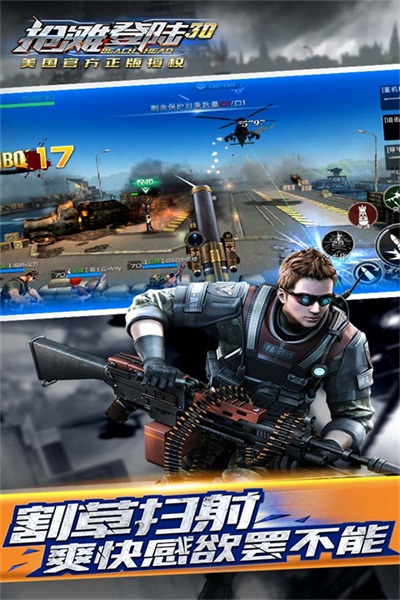 7、《抢滩登陆3d》传承了原作固定位置的设定,让玩家将目光专注于手中的枪炮和敌人,纯正地享受射击的快感。同时,手游全面升级了武器系统,玩家可以操控众多高度写实的世界名枪迎战来敌,当杀伤力强大的枪械倾泻弹药扫射时,一排排倒下的敌人会瞬间引爆热血。这样的战斗能停下来吗