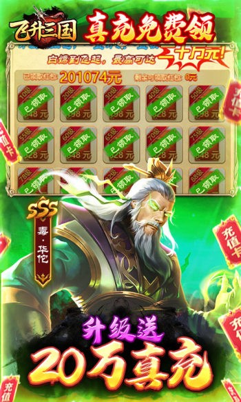1、飞升三国是返利可获取大量元宝福利的一款大型复古系列的三国手游,游戏中你将化身主公,需要招募武将为主培养,更通过主支线任务,获取资源等提升,游戏玩法颇多,快邀约好友一起来玩吧