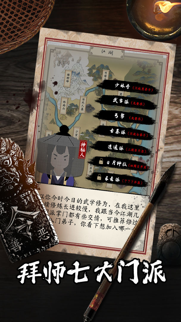 -选择心中门派,正道或***,皆有不同剧情走向