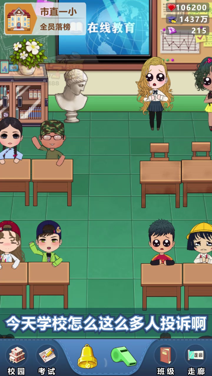 游戏还加入了趣味十足的校园日常元素,您需要时刻关注学生的动态,及时发现并处理各种突发状况,让校园生活既丰富多彩又井然有序。