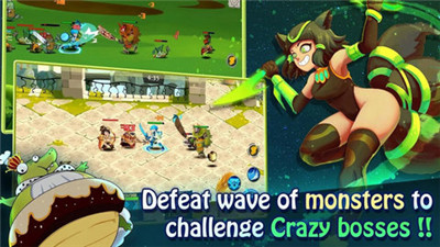 游戏采用创新的RPG战斗模式,玩家需要制定周密的作战计划来应对各种挑战。你可以根据敌人特点灵活调整阵容,选择最适合的战士、法师或射手来应对不同战况。每场战斗都需要你精准操控主力英雄,同时指挥监护人的支援时机。战斗过程中,你需要消灭源源不断出现的怪物,运用近战攻击或远程射击来击退敌人。