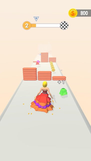 在游戏中,玩家将扮演一位时尚女王,需要在跑酷过程中收集各种服饰道具来扩大裙摆。但要注意避开那些会让裙子缩小的障碍物。随着关卡的推进,难度会逐渐提升,玩家需要更加精准地控制角色移动。当成功通关时,系统会根据收集到的服饰数量展示最终成型的华丽裙装,让玩家获得满满的成就感。