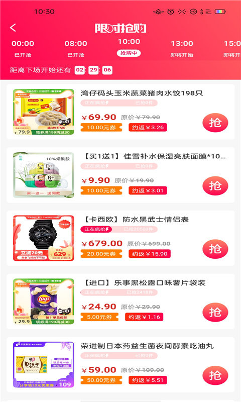 【限时抢购】每天定时推出上百种热门商品的限时抢购活动,价格低至市场价的3折起。这些商品都是时下最受欢迎的热销品,数量有限,先到先得,让您享受抢购的刺激与乐趣。