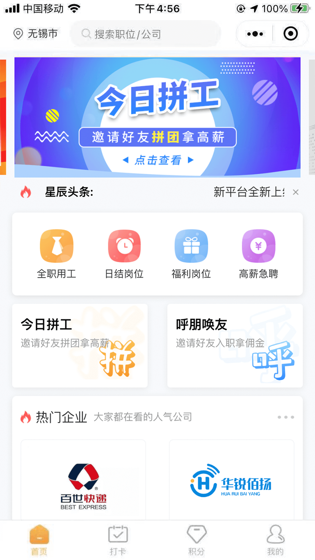 【高额赏金】注册、填写简历、邀请好友即拿赏金,边找工作边赚钱,最高可获得千元现金奖励。平台定期推出限时加码活动,让用户获得更多额外收益。