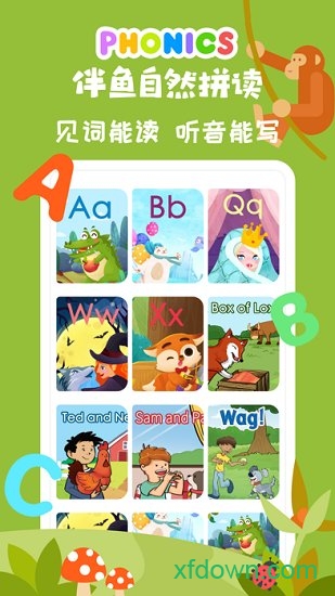 伴鱼自然拼读是一款专为4-10岁儿童设计的英语启蒙教育软件,通过趣味互动和科学教学体系,帮助孩子轻松掌握英语基础知识。软件采用欧美权威教学标准,结合原创动画和智能AI测评系统,让孩子在游戏中学习自然拼读、童谣等内容,培养"见词能读、听音能写"的能力。丰富的课程内容和生动的教学方式,不仅能激发孩子的学习兴趣,还能全面提升英语听说读写能力,是家长进行英语早教的理想选择。