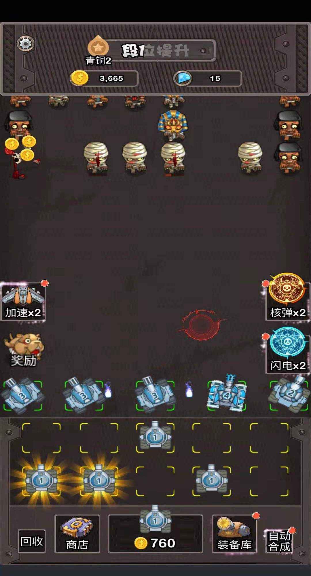 游戏采用经典的合成升级机制,玩家需要通过智慧搭配战术阵容,建立固若金汤的防御阵线。复古像素风格的画面搭配轻松上手的操作方式,让各年龄段的玩家都能快速融入游戏世界。通过合成两个相同等级的坦克可以获得更高级别的强力单位,击败敌人可获得金币奖励,使用钻石还能对坦克进行属性强化。游戏包含闯关模式、无尽模式、BOSS挑战等多种玩法,让玩家享受策略与休闲并重的游戏体验。