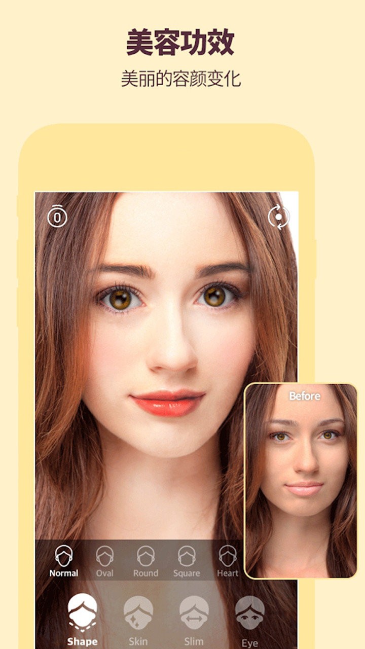 专业美颜相机:一键美颜功能可同时完成瘦脸、祛痘、美白等多项操作,自然美颜效果可自由调节,让你轻松变身白富美。