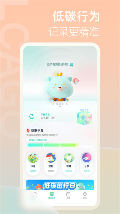 基于LBS的"绿色邻里"功能,可发现周边3公里内的同好者。专业设计的社群成长体系,通过21天低碳挑战等活动,帮助用户逐步建立可持续的生活习惯。