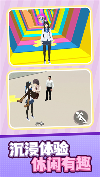 游戏场景制作精良,从教学楼到操场,从樱花大道到天台,每个场景都经过精心打磨。玩家可以遇到各种有趣的校园人物,与他们互动交流,在跑酷过程中感受不同的校园故事。