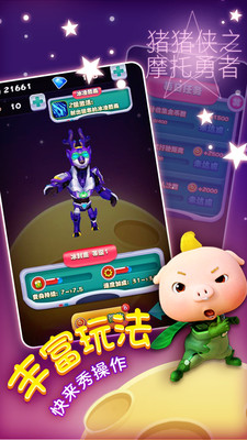 《猪猪侠之摩托勇者》是由超人气动画《猪猪侠》正版授权的竖版3D摩托竞速格斗手游。游戏忠实还原了动画中的经典角色形象和标志性变身系统,让玩家可以亲身体验成为五灵卫的荣耀时刻。从猪猪侠到小呆呆,每个角色都拥有独特的摩托车和战斗风格,玩家可以在充满挑战的赛道上尽情展现驾驶技巧。游戏还特别设计了丰富的剧情关卡,让玩家在竞速的同时也能重温动画中的精彩故事。