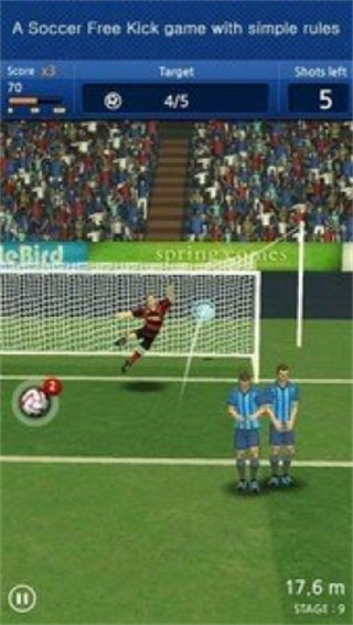 《足球射门》是一款令人欲罢不能的3D足球射门游戏,它将带给玩家前所未有的指尖足球体验。在这款游戏中,玩家无需复杂的操作,只需轻松滑动手指就能完成各种精彩射门,享受进球瞬间的极致快感。游戏采用顶尖的3D引擎打造,从绿茵场地的细节到球员的逼真动作都栩栩如生,让玩家仿佛置身于真实的足球赛场。