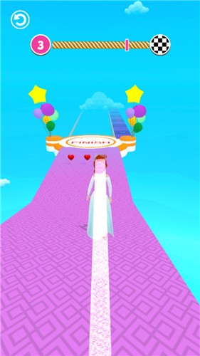 婚纱我最美是一款充满趣味与挑战的休闲闯关类跑酷游戏,玩家将扮演一位美丽的新娘,在精心设计的赛道上展开一场别开生面的竞速冒险。游戏的核心玩法是控制角色在赛道上快速奔跑,同时收集散落的婚纱和道具,巧妙避开各种障碍物,最终以最快的速度抵达终点。随着游戏进程的推进,玩家需要完成系统发布的各种任务,这些任务不仅考验玩家的反应速度,还需要运用策略合理使用道具,才能获得丰厚的游戏奖励。
