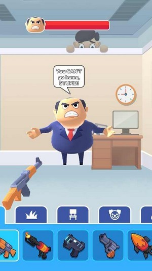 《暴打坏老板》的操作方式非常简单,只需用手指点击屏幕就能完成所有动作。游戏提供了多种武器选择,无论是远程射击还是近战砍杀,都能让你找到最适合自己的战斗风格。快速点击屏幕可以触发一连串的酷炫动作,当你看到老板们痛苦的表情时,那种成就感简直无与伦比。游戏还加入了大量搞笑动画效果,老板们会以夸张的方式承受你的攻击,既不会流血也不会抱怨,让你可以毫无顾忌地发泄情绪。此外,游戏还准备了各种神奇道具,你可以用它们来花样百出地折磨老板,彻底释放内心的压力。