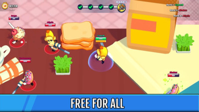 如果你被杀,你会回到以前的武器,这种惩罚机制促使玩家采取更谨慎的战术。游戏设有完善的段位系统,让玩家可以不断挑战更高水平的对手。新颖有趣的大作战游戏题材,将美食与战斗完美融合,创造独特的游戏体验。在对手最不受保护时发动突袭是取胜关键,连续击杀可以积累优势。游戏采用创新的武器升级赛制,使用5种不同的武器完成击杀才能获得最终胜利。每局比赛都设有时间限制,增加了游戏的紧张感和策略性。特别设计的联赛系统让玩家可以不断突破自我,与全球高手一较高下。
