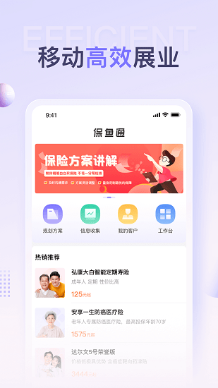 保鱼通重新定义了保险展业模式,让您无论是在家中、咖啡厅还是客户现场,都能通过手机轻松完成全业务流程。平台集客户管理、方案设计、产品展示、知识学习于一体,特别配备智能计划书生成系统,3分钟即可为客户定制专属投保方案。更拥有行业领先的保险条款解析功能,帮助您用专业打动客户,大幅提升签单成功率。800万保险精英的共同选择,让您的展业之路事半功倍。
