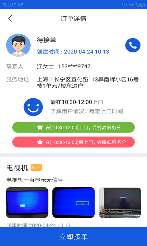操作简便,一目了然:简洁直观的界面设计,让维修师傅可以轻松查看订单详情、客户评价等信息,快速做出接单决策。