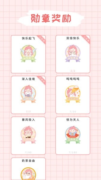 勋章奖励:按照打卡次数来获取勋章奖励,快试一试自己能坚持打卡多久?或者和朋友一起比比看,谁领取勋章多。从"奶茶新手"到"奶茶达人",丰富的成就系统让记录奶茶变得更有趣,还能分享到社交平台炫耀你的奶茶战绩。