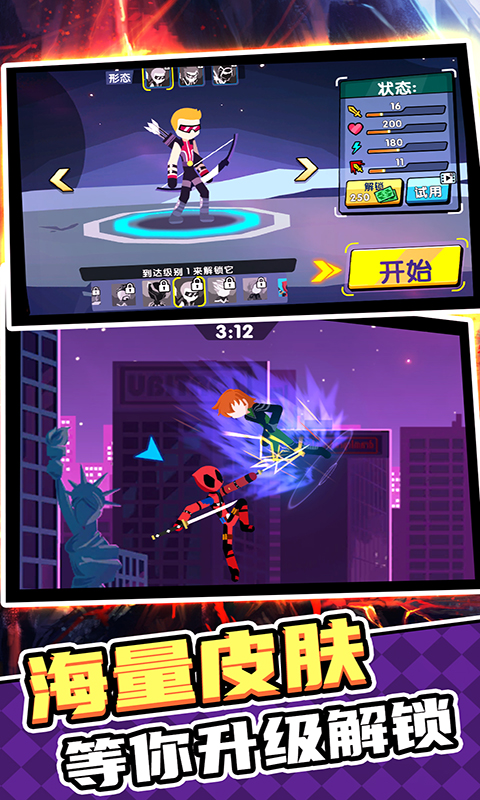 这是一款全新推出的刺激类手机游戏,将带给玩家全新的游戏体验和玩法。在游戏中,玩家将控制超级英雄角色,通过精准的操作和策略击败其他玩家,成为场上唯一的幸存者,赢得最终胜利。游戏支持多人在线对战,让你随时随地都能享受热血沸腾的战斗乐趣。独特的角色成长系统让每个玩家都能打造属于自己的专属英雄,快来加入战斗,成为这个宇宙最强的格斗王者吧!