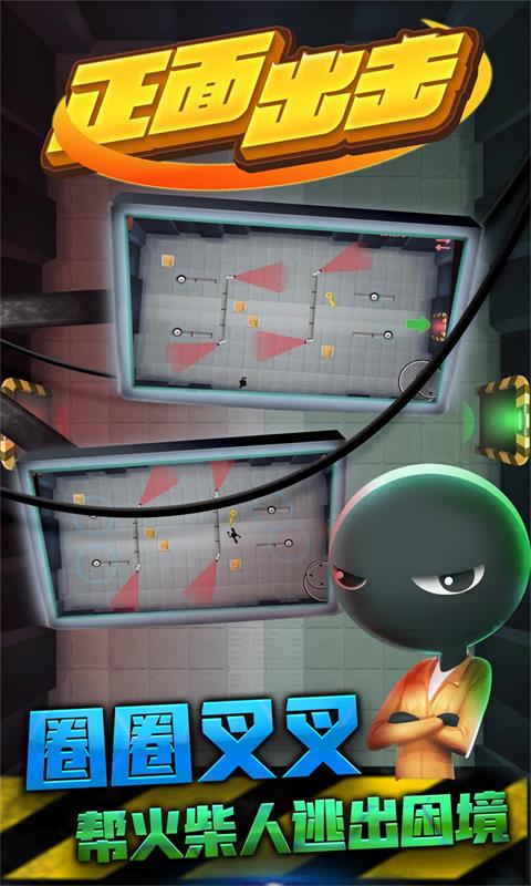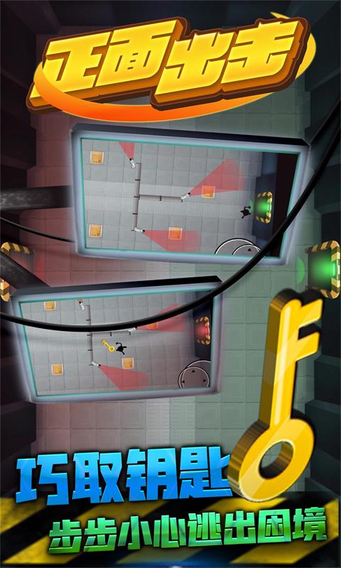 正面出击是一款充满创意与挑战的休闲逃脱类小游戏,玩家将扮演一名灵活的火柴人,在错综复杂的密室场景中展开一场惊险刺激的冒险之旅。游戏的核心玩法是帮助火柴人规划最佳逃脱路线,巧妙避开巡逻的探照灯光束,成功获取钥匙并打开通往下一关的大门。整个游戏过程紧张刺激,需要玩家时刻保持警惕,一旦被灯光照射到就会立即失败。