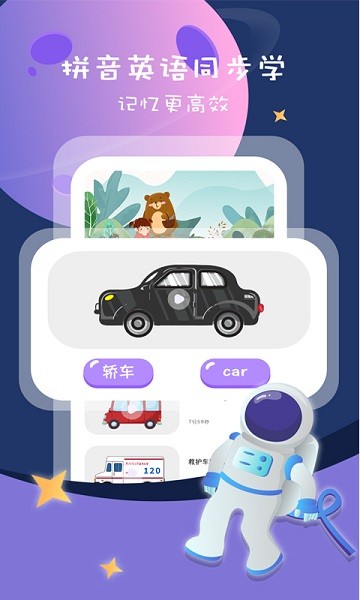 幼儿识字早教卡是一款专为0-6岁儿童设计的双语启蒙教育软件。通过生动有趣的互动方式,帮助孩子在游戏中轻松掌握基础词汇。软件包含数百张精美识字卡片,涵盖日常生活常见物品,每张卡片都配有可爱的卡通形象和双语发音。创新的口诀记忆法和拼音英语同步讲解,能有效激发孩子的学习兴趣,培养语言表达、逻辑思维和记忆能力,让早期教育变得简单而高效。