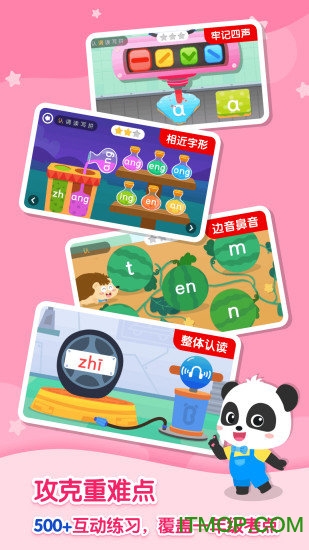 500多个趣味十足的益智测练题目,包括听拼音声音拔萝卜、拼音声调饼干DIY、找拼音气球等多种互动形式。通过这些孩子们喜爱的游戏方式,进行多维度拼音练习测试,既能复习已学知识,又能巩固重难点,让拼音学习效果更加显著。