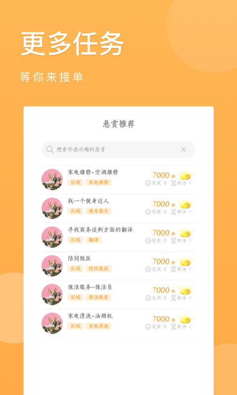 更多任务,等你来接单:每日更新海量任务资源,涵盖生活服务、专业技能、跑腿代办等多个领域,总有一款适合您。