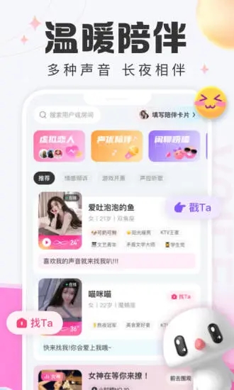 蘑菇语音是一款深受95后、00后喜爱的语音社交平台,拥有海量优质用户和丰富的互动场景。平台上不仅有专业的声优女神入驻,更有来自五湖四海的年轻人在这里寻找知音。你可以通过语音连麦的方式快速结识新朋友,在轻松愉快的氛围中发展友谊,甚至收获甜蜜的爱情。平台采用严格的实名认证机制,确保每位用户的交友安全。