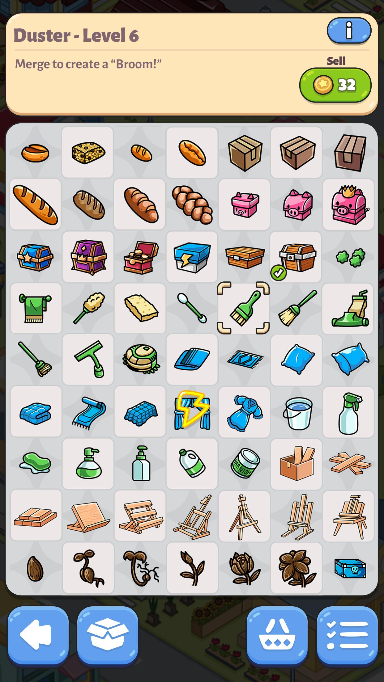 合并:创新性的物品合成系统允许玩家将基础道具两两组合,产生功能各异的进阶工具。通过不断尝试新的合并公式,玩家能解锁隐藏配方,用独特创意改造小镇的每个角落。