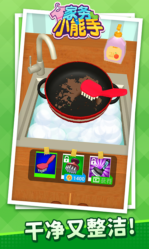 游戏的自由度很高,您可以解锁游戏的不同清洁工具,只要方便清洁,就有多种选择。工具升级系统让玩家可以强化基础设备,提高清洁效率。特殊工具如磁力吸尘器能一次性清理金属物品,泡泡枪可快速清洁大面积玻璃。