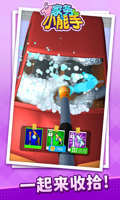 这个游戏很有趣,大量游戏清理任务在这里打开。玩家可以来这里自由体验和完成挑战。游戏采用卡通风格的画面设计,色彩明亮活泼。角色造型可爱,清洁动作流畅自然。音效设计细致入微,从水流声到吸尘器噪音都真实还原。