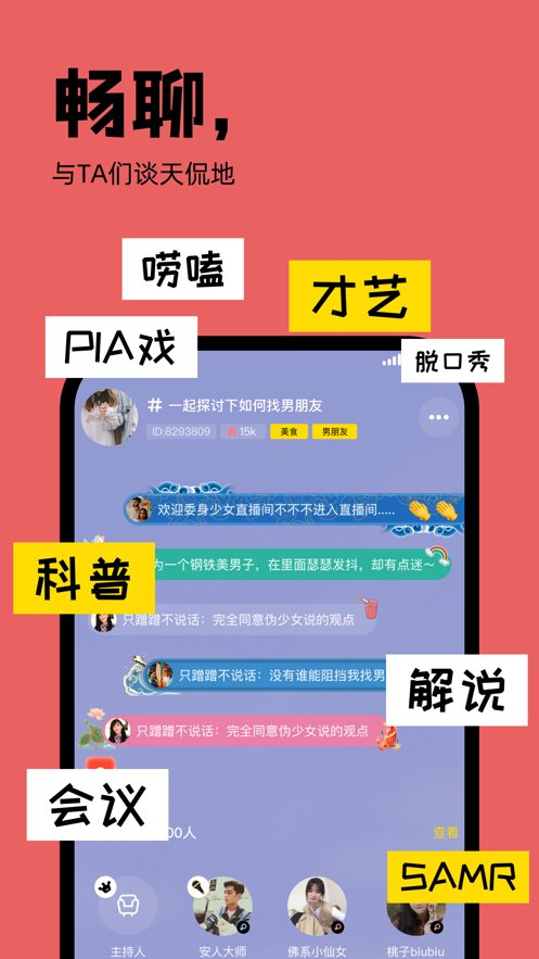 - 在通勤路上、健身间隙、睡前时光等碎片时间,都能找到有趣的灵魂一起畅聊