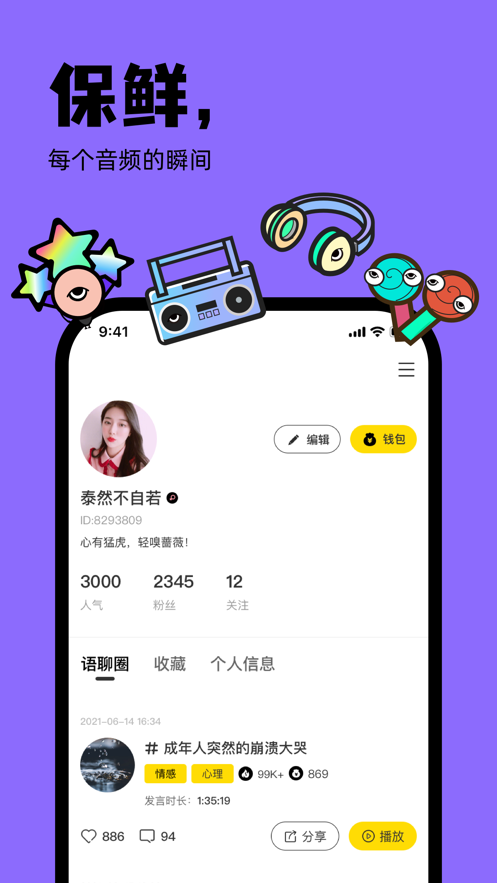 - 通过声音展现个人魅力,用独特的声线分享你的专长和故事,吸引志趣相投的朋友