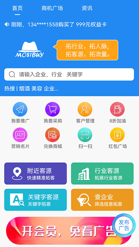 莫思买app是一款专为生意人打造的综合性拓客服务平台,由深圳市中鸿源(深圳)控股有限公司投资研发,致力于为用户提供全方位的电商智慧生态链服务。平台集成了拓客、人脉爆粉、商务洽谈、在线商城等核心功能,操作界面简洁直观,功能强大且易于上手,是广大商家拓展业务、提升销量的得力助手。