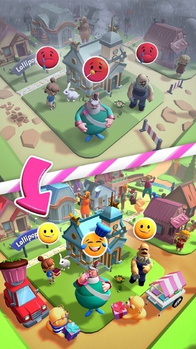 Q萌可爱的造型设计,每一个主人公形象都非常的搞笑怪诞:游戏角色采用夸张的卡通风格设计,从呆萌的糖果精灵到古怪的顾客,每个角色都充满个性魅力。