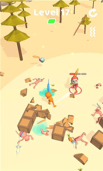 《剑士大混战》是一款令人热血沸腾的即时动作格斗游戏,玩家将化身技艺高超的火柴人剑士,在充满挑战的竞技场中展开激烈对决。游戏采用流畅的物理引擎打造真实打击感,通过简单的触屏操作即可施展华丽连招,体验刀光剑影间的极致快感。无论是单人闯关还是多人混战模式,都能让玩家感受到肾上腺素飙升的战斗乐趣。独特的俯视角设计与方块风格场景相得益彰,随时随地都能享受这场视觉与操作的双重盛宴。