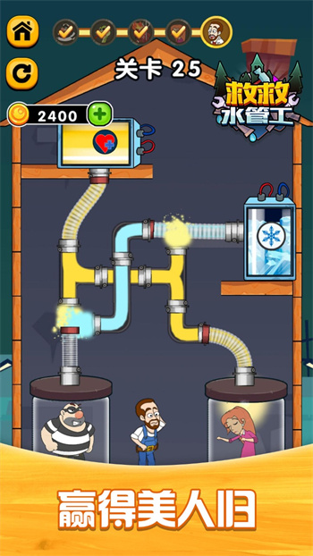救救水管工是一款充满创意与挑战的休闲益智闯关游戏,它将水管连接玩法与解谜冒险完美结合。在这款游戏中,玩家需要化身智慧的水管工程师,通过巧妙布置管道网络,引导水流精准流向目标位置,从而击败怪物、拯救被困的水管工伙伴。游戏不仅设计了丰富多样的谜题关卡,还加入了宝藏收集系统,让玩家在破解水路难题的同时享受探索的乐趣。随着关卡推进,挑战难度会逐步提升,玩家需要运用氧气和水资源的特性来应对更复杂的困境。游戏操作简单直观,但玩法深度十足,既能满足休闲玩家的轻松体验需求,又能让硬核玩家享受烧脑解谜的快感。