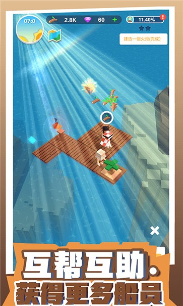 航行探索周围的岛屿,并有机会拯救和招募幸存的伙伴,这些伙伴不仅会帮助建设木筏,还能带来特殊的技能和故事线。