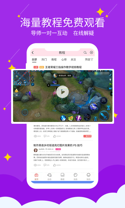 《资讯教程》:海量高质量教程在线观看,导师实时在线解疑,如果还是未看懂可一键拜师,导师与你一对一面对面零距离教学辅导。平台定期更新行业前沿资讯,让用户随时掌握最新知识动态,保持竞争力。