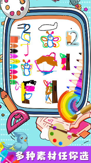 包含了多样化图形,各种种类的图案都能看到,从简单的几何图形到复杂的卡通人物应有尽有,满足不同年龄段孩子的绘画需求。