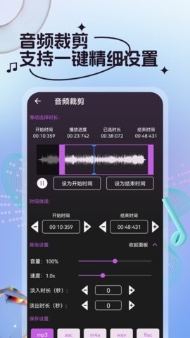 用户可以直接在平台进行音频的剪辑,直接剪掉不需要的音频片段进行保存,支持精确到毫秒级的剪辑精度,确保每一处剪辑都完美无缺。