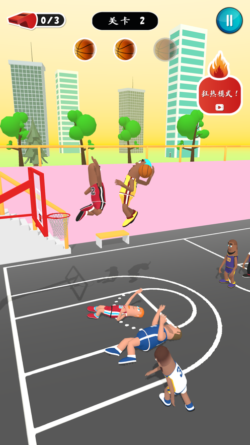 作为一款竞技游戏,它提供了丰富的比赛模式。从简单的投篮练习到高强度的职业联赛,满足不同水平玩家的需求。疯狂模式特别考验玩家的极限操作,在这个模式下你可以挑战自己的最高得分,冲击全球排行榜。