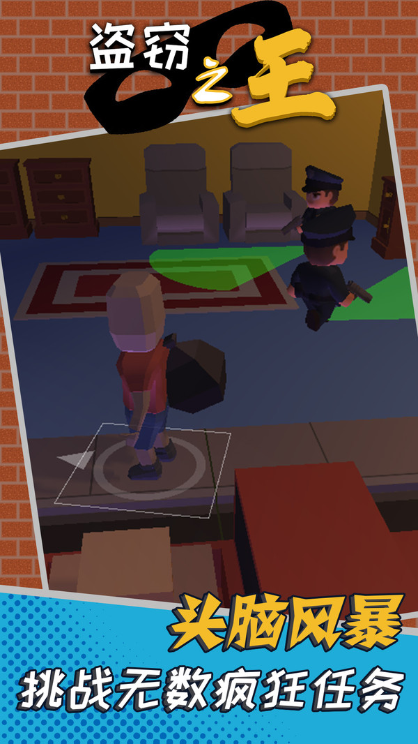 《盗窃之王》是一款充满刺激与挑战的休闲模拟游戏,让你体验从初出茅庐的小偷成长为盗窃之王的精彩历程。游戏中,你将潜入各式各样的家庭住宅,在逼真的场景中完成高难度盗窃任务。随着关卡的逐步解锁,你需要运用智慧与技巧避开监控和保安,确保每一次行动都能全身而退。丰富的场景设计和紧张刺激的逃脱机制,让你在享受盗窃快感的同时,也能感受到步步惊心的冒险乐趣。