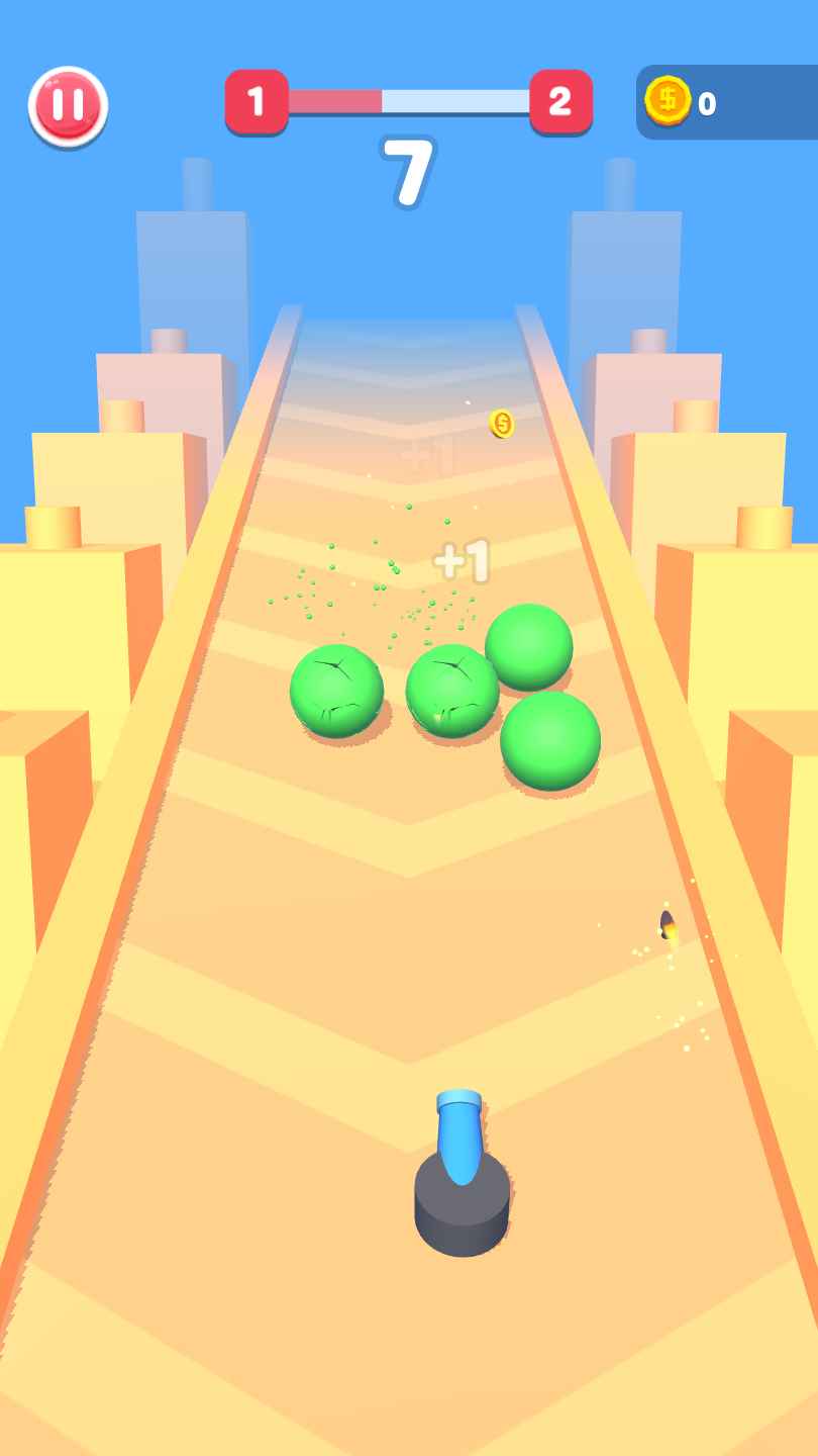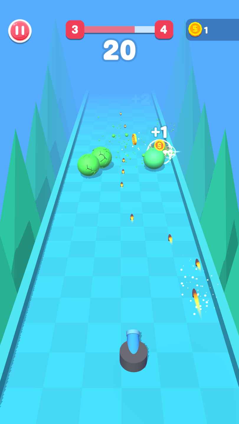 不断升级你的大炮,让你在跑道中存活更久。随着游戏进行,大炮的威力、射速等属性都可以通过收集金币来提升,帮助你应对越来越复杂的关卡挑战。
