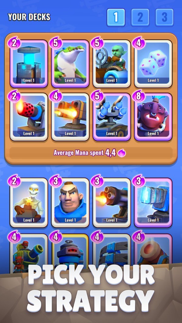卡牌对战系统是游戏的最大亮点,玩家需要从牌库中精心挑选卡牌组合,在战斗中灵活运用。游戏包含多种竞技场地图,每张地图都有独特的地形特点,需要采用不同的战术应对。玩家可以发挥创意,开发出各种出人意料的战术组合,用非传统的方式击败对手。
