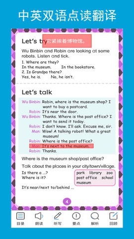六年级英语点读辅导采用先进的中英双语阅读和翻译技术,让学生无需额外指导就能轻松理解英语内容。软件内置强大的点读功能,只需轻轻一点即可听到标准发音,帮助纠正发音错误。此外,软件还提供单词巩固、口语训练、教材同步阅读等多项实用功能,配合名师讲解重点知识,让学习更加高效。特别值得一提的是,软件收录了海量小升初专业英语训练题,学生可以根据自身需求选择适合的课程进行针对性练习。