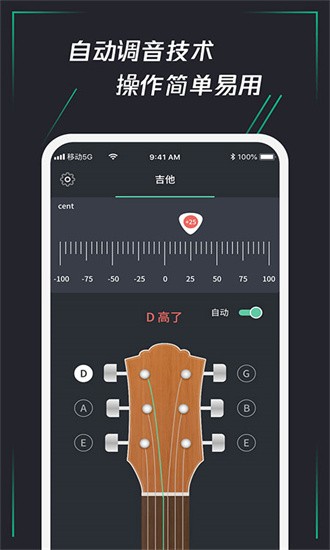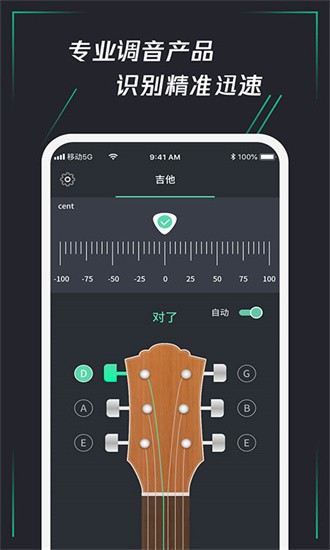 【自动调音】专为初学者设计的智能模式,只需拨动琴弦即可自动完成调音过程,操作简单但效果精准,大大降低了调音门槛。
