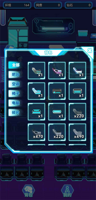 经营过程中,要经常查看背包中的物品,合理布置网吧环境。通过升级装饰品等级,您可以解锁更多高级设备,比如性能更强的电脑、更舒适的座椅等,这些都将提升顾客满意度和消费水平。