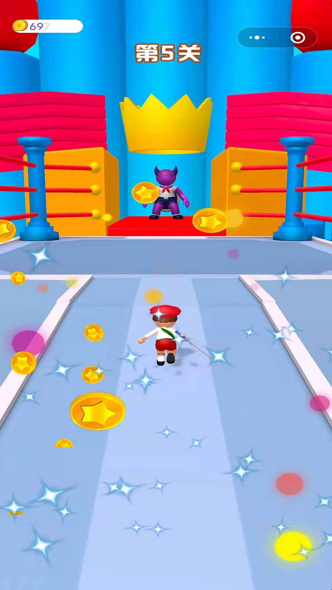 这款游戏不仅拥有简单易上手的操作方式,还融入了丰富的成长系统。玩家在跑酷过程中收集的金币可以用来兑换各种加速道具、解锁炫酷武器和时尚服饰。随着游戏进程的推进,关卡难度会逐渐提升,从简单的跳跃躲避到需要精准计算时机的复杂操作,让玩家在挑战中不断成长。游戏还特别设计了BOSS战环节,当玩家成功闯过重重障碍到达终点后,还需要与强大的BOSS展开激烈对决,为游戏增添了更多策略性和成就感。