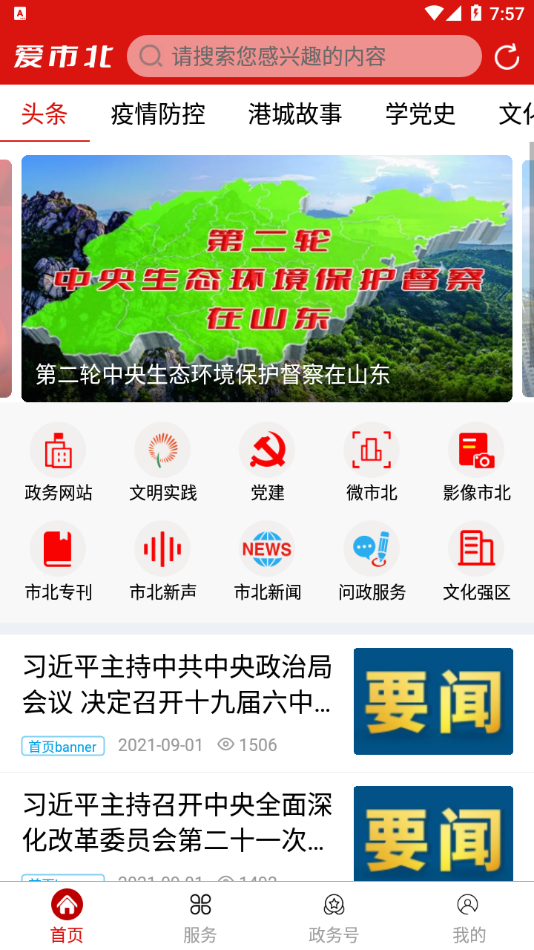 打开爱市北软件后,首页直观展示了政务网站、文明实践、党建、文化强区、市北专刊等核心功能入口,用户可根据需求快速定位。在服务页面,平台将各类服务细分为本地服务和公共服务两大类别,涵盖居民日常生活的方方面面。政务页面集中展示政策信息、通知公告、区情介绍等重要内容,帮助市民及时了解政府工作动态。政务号页面则汇集了各街道和部门的官方信息发布,确保政务公开透明。
