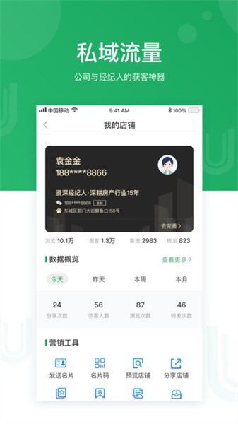 1、智能数据看板:实时统计带看量、转化率等核心指标,自动生成可视化分析报告。系统基于历史数据预测市场趋势,为经纪人提供决策支持。